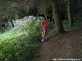 Kilomètre 6,5, on retraverse une seconde fois la route pour continuer la pente à travers une pâture. C’est ici que je retrouve ma douce. Gregus a pris déjà quelques mètres d’avance, je ne le reverrais plus avant l’arrivée.